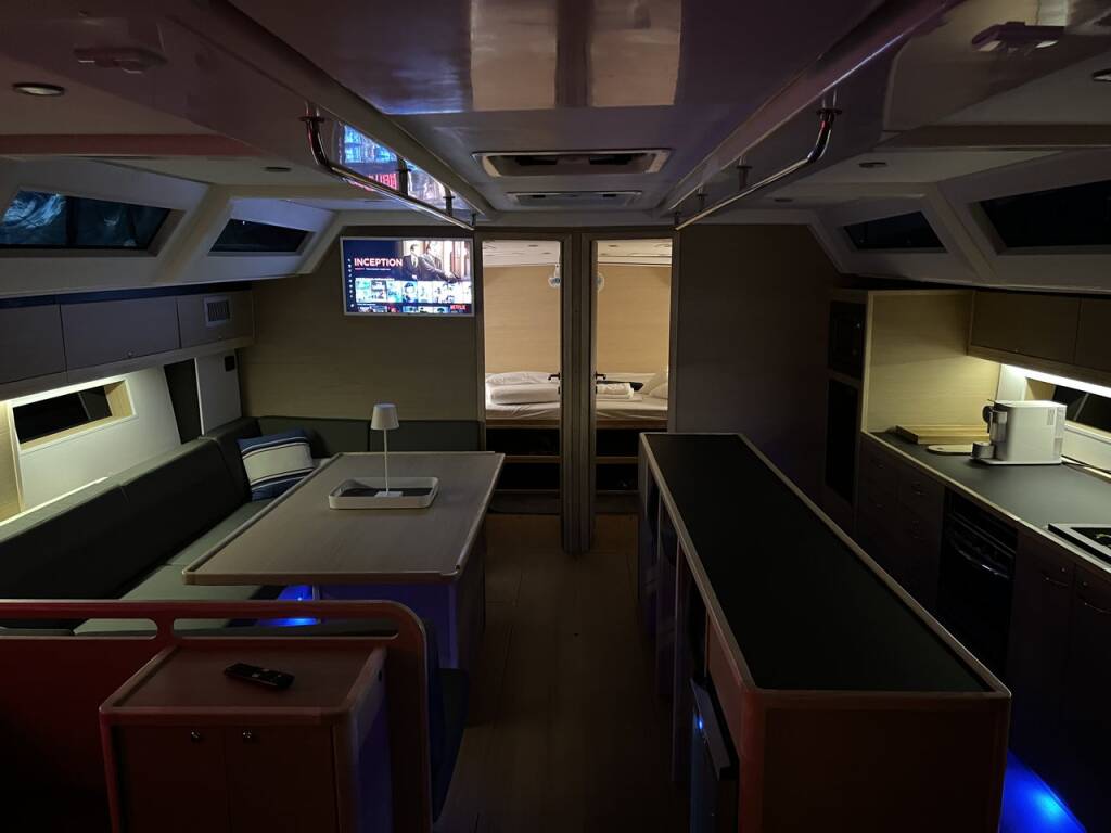 Sailing yacht D&D Kufner 54 Aurora Blu, built in 2022 is anchored in the Salerno, Marina d'Arechi, Campania, Italy. It has 5 cabins, can accommodate 10 people and has 5 toilets. Bed linen and kitchen equipment are included in the price.