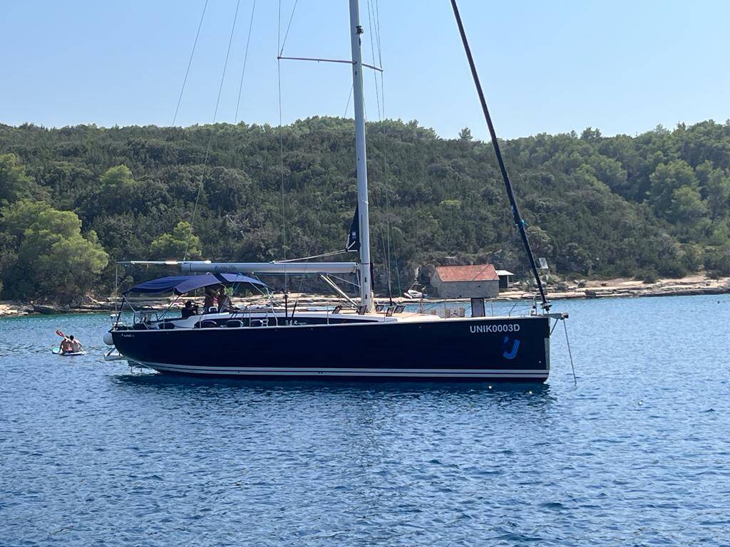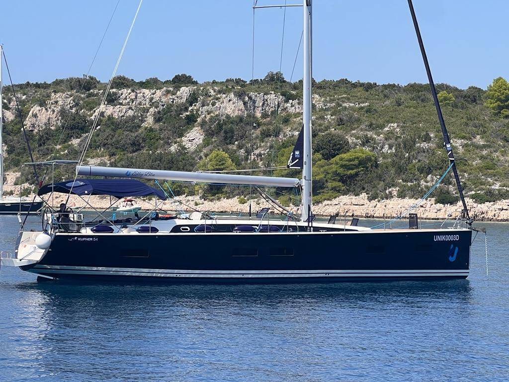 Sailing yacht D&D Kufner 54 Elly Blu, built in 2023 is anchored in the Salerno, Marina d'Arechi, Campania, Italy. It has 5 cabins, can accommodate 10 people and has 5 toilets. Bed linen and kitchen equipment are included in the price.