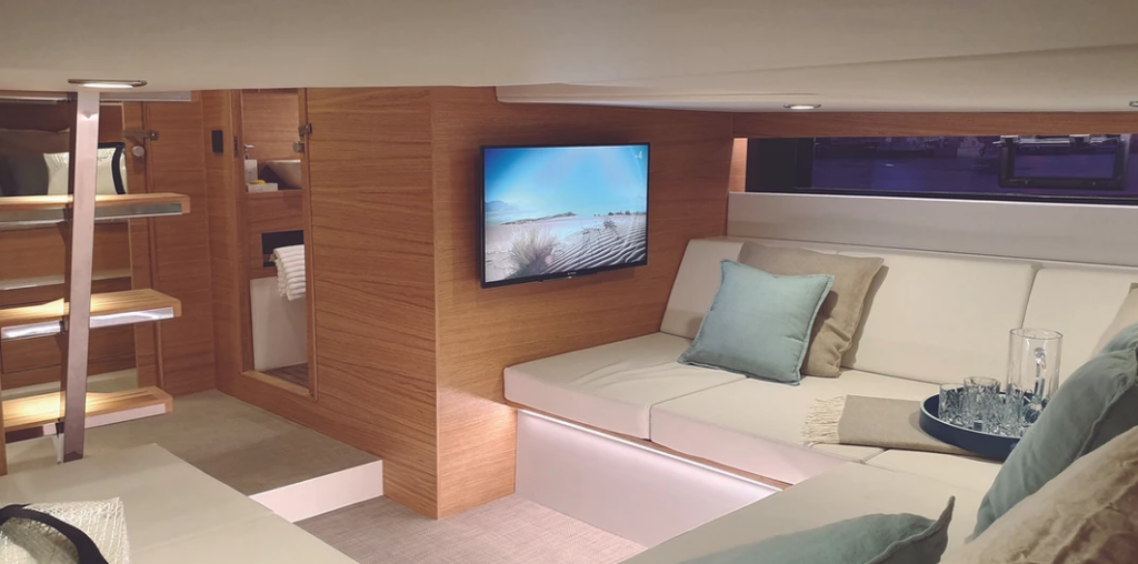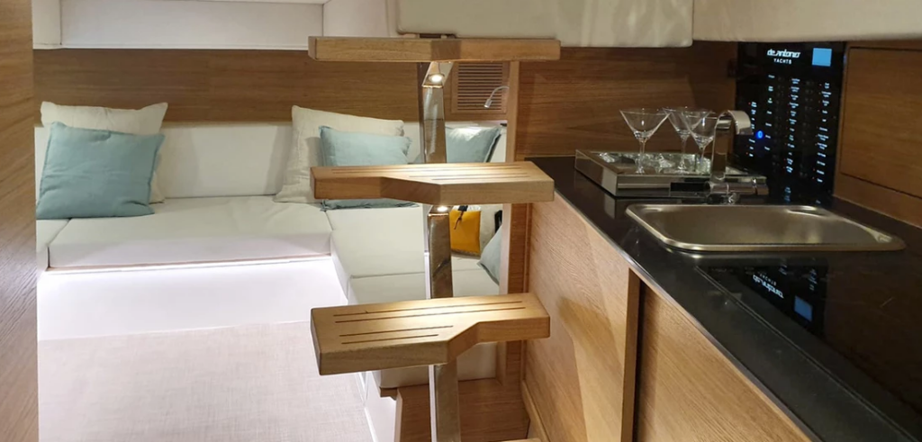 Motor yacht De Antonio D42 Open Eragon, built in 2021 is anchored in the Trogir, Yachtclub Seget (Marina Baotić), Split region, Croatia. It has 2 cabins, can accommodate 5 people and has 1 toilets. Bed linen and kitchen equipment are included in the price.