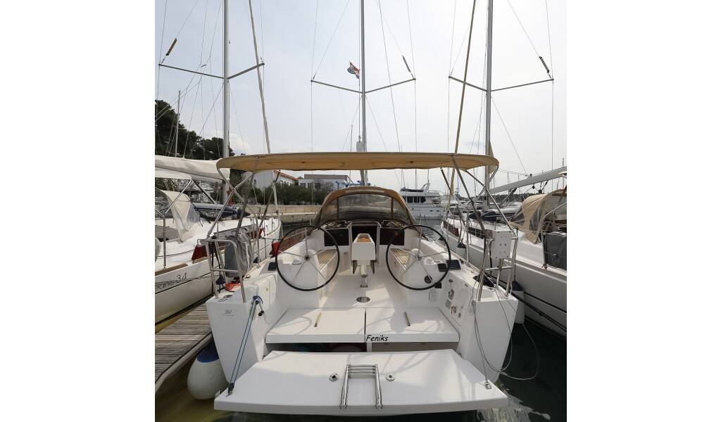 Sailing yacht Dufour 350 GL Feniks, built in 2016 is anchored in the ACI Marina Vodice, Šibenik region, Croatia. It has 3 cabins, can accommodate 6 + 2 people and has 1 toilets. Bed linen and kitchen equipment are included in the price.