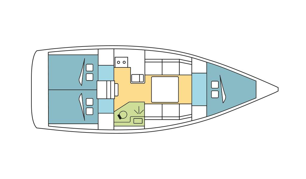 Sailing yacht Dufour 360 GL ACAJOU, built in 2019 is anchored in the Olbia, Sardinia, Italy. It has 3 cabins, can accommodate 6 + 2 people and has 1 toilets. Bed linen and kitchen equipment are included in the price.
