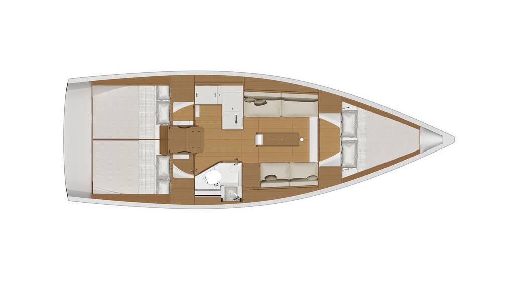Sailing yacht Dufour 360 GL Minion, built in 2018 is anchored in the Sukosan, D-Marin Dalmacija Marina, Zadar region, Croatia. It has 3 cabins, can accommodate 6 + 2 people and has 1 toilets. Bed linen and kitchen equipment are included in the price.