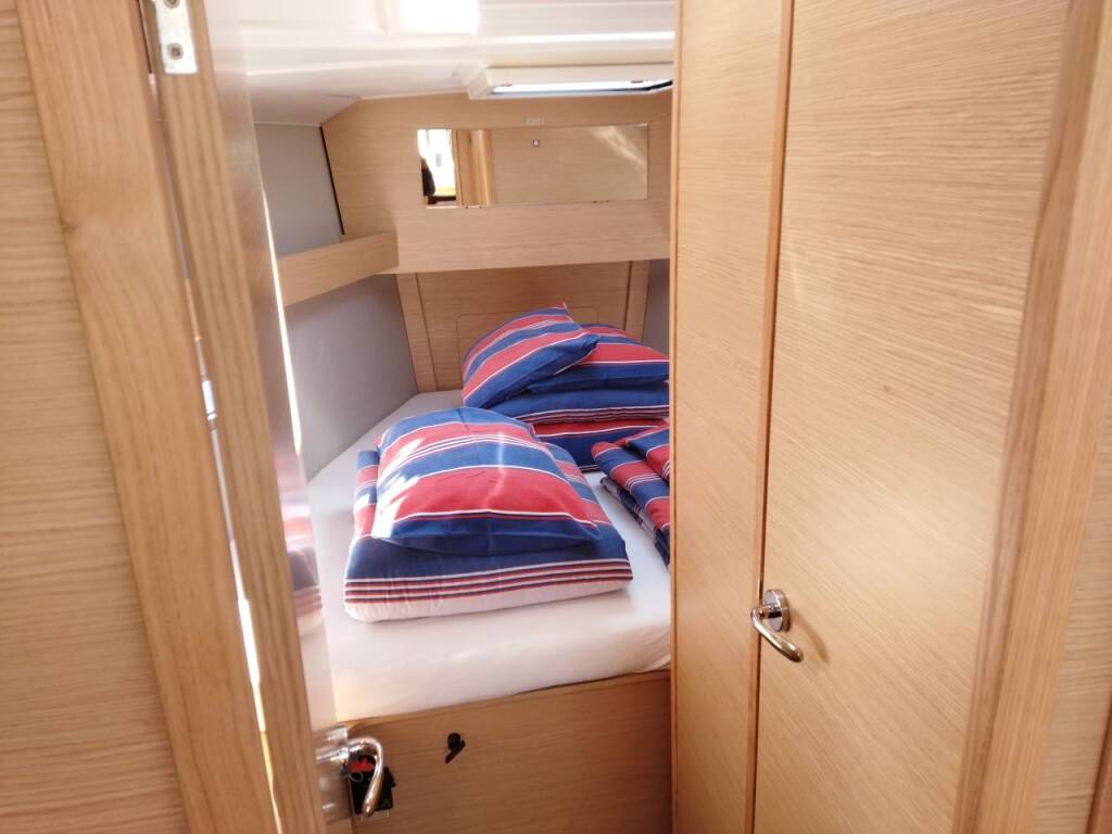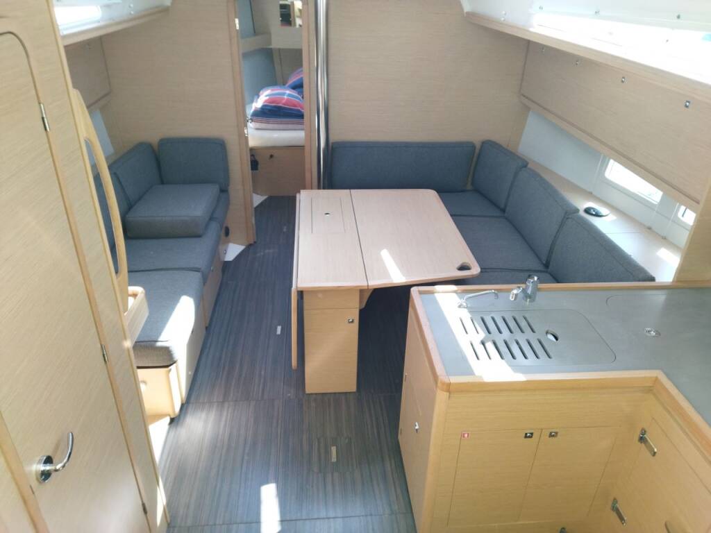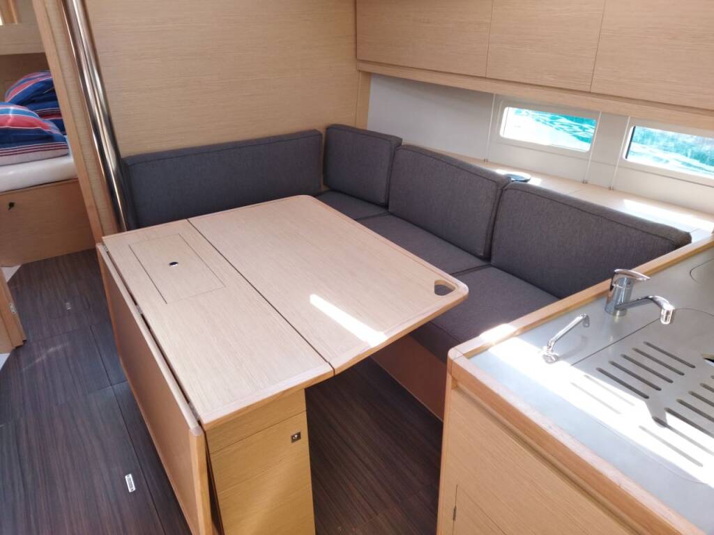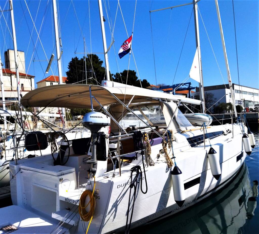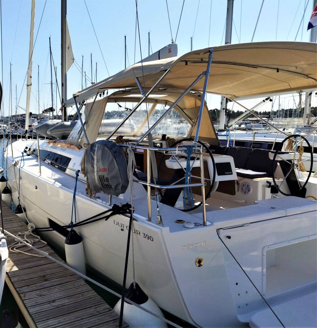 Sailing yacht Dufour 390 GL Mercury, built in 2021 is anchored in the ACI Marina Trogir, Split region, Croatia. It has 3 cabins, can accommodate 6 + 2 people and has 2 toilets. Bed linen and kitchen equipment are included in the price.