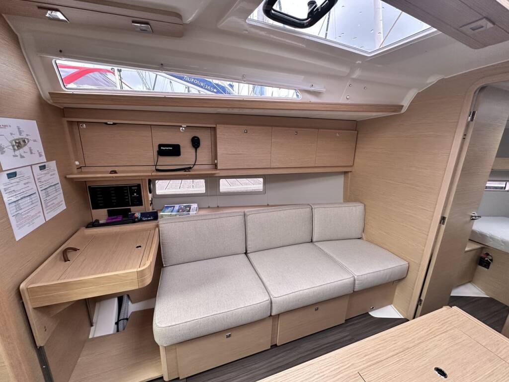 Sailing yacht Dufour 390 Stella Marie IV, built in 2023 is anchored in the French Atlantic, La Rochelle, Poitou-Charentes, France. It has 3 cabins, can accommodate 6 + 2 people and has 1 toilets. Bed linen and kitchen equipment are included in the price.