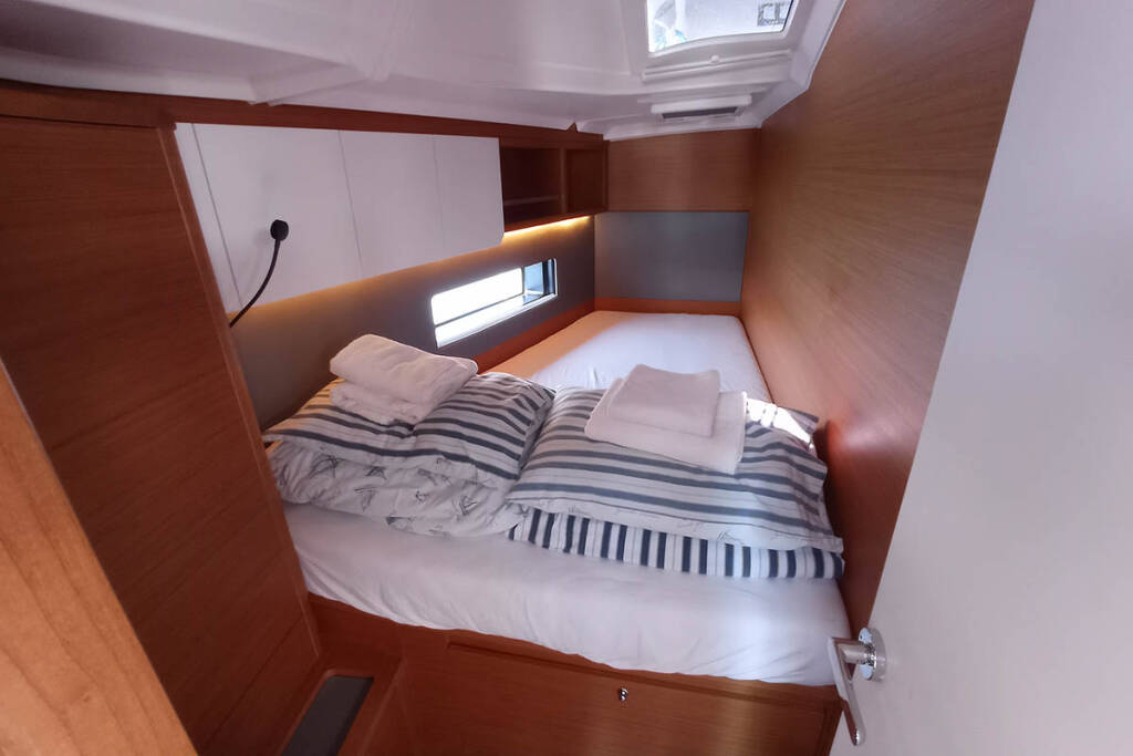 Sailing yacht Dufour 41 Cello, built in 2024 is anchored in the Trogir, Yachtclub Seget (Marina Baotić), Split region, Croatia. It has 4 cabins, can accommodate 8 + 2 people and has 2 toilets. Bed linen and kitchen equipment are included in the price.