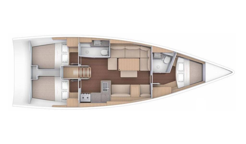 Sailing yacht Dufour 412 Altair, built in 2021 is anchored in the Marina Hramina, Murter, Šibenik region, Croatia. It has 3 cabins, can accommodate 6 + 2 people and has 2 toilets. Bed linen and kitchen equipment are included in the price.
