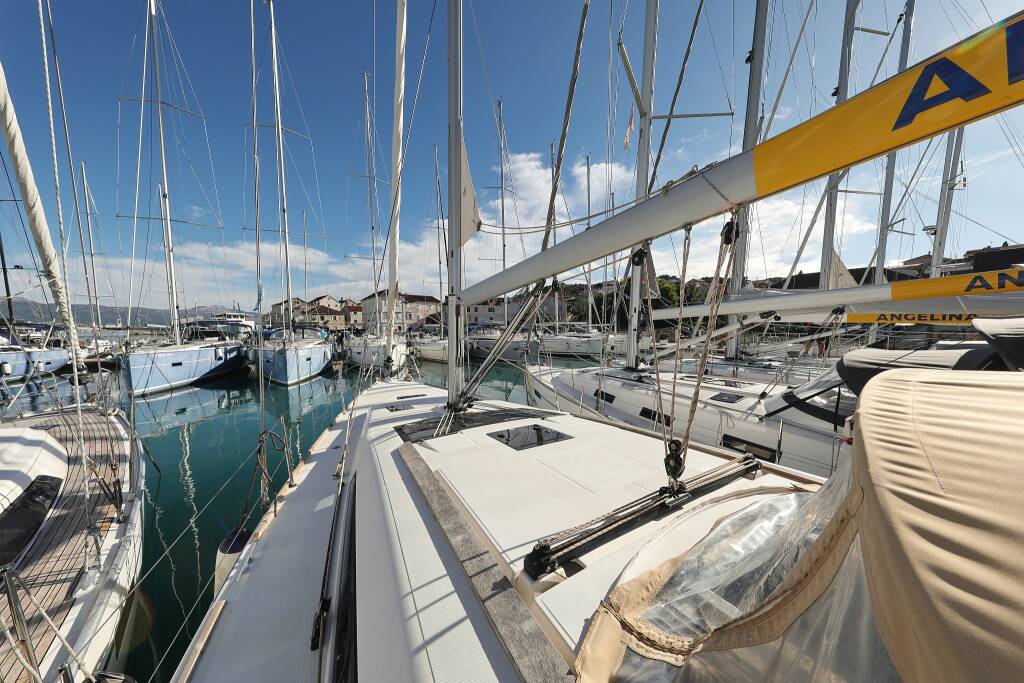 Sailing yacht Dufour 412 GL Adrio, built in 2018 is anchored in the ACI Marina Trogir, Split region, Croatia. It has 3 cabins, can accommodate 6 + 2 people and has 2 toilets. Bed linen and kitchen equipment are included in the price.
