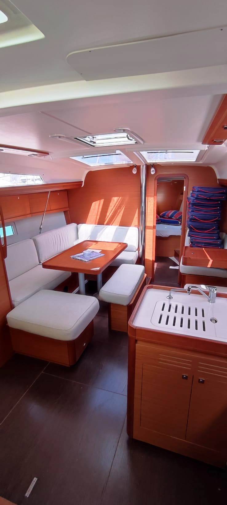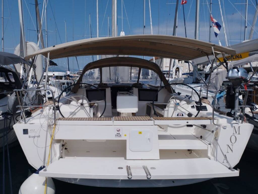 Sailing yacht Dufour 412 GL Mona, built in 2020 is anchored in the ACI Marina Trogir, Split region, Croatia. It has 3 cabins, can accommodate 6 + 2 people and has 2 toilets. Bed linen and kitchen equipment are included in the price.