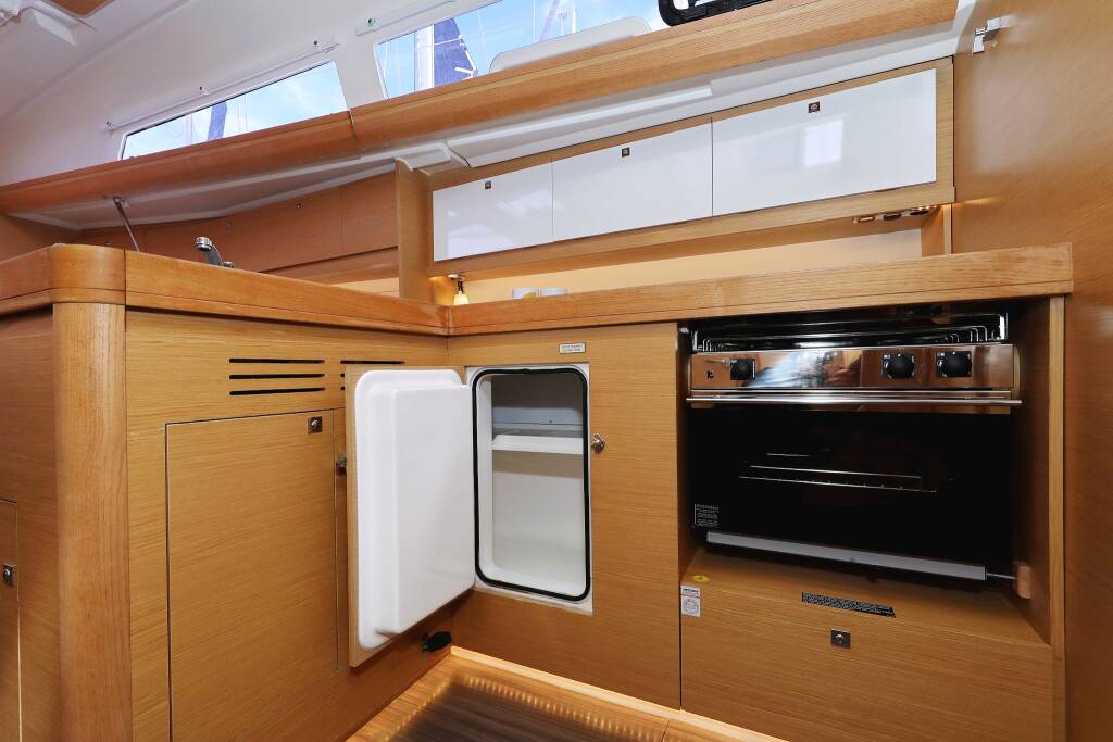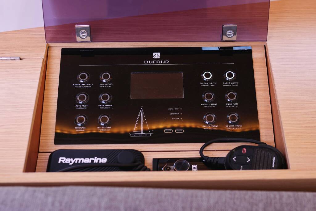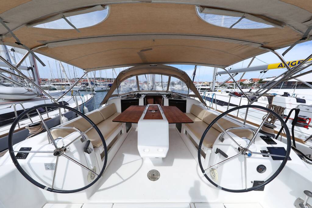 Sailing yacht Dufour 412 GL Themisto, built in 2021 is anchored in the ACI Marina Trogir, Split region, Croatia. It has 3 cabins, can accommodate 6 + 2 people and has 2 toilets. Bed linen and kitchen equipment are included in the price.