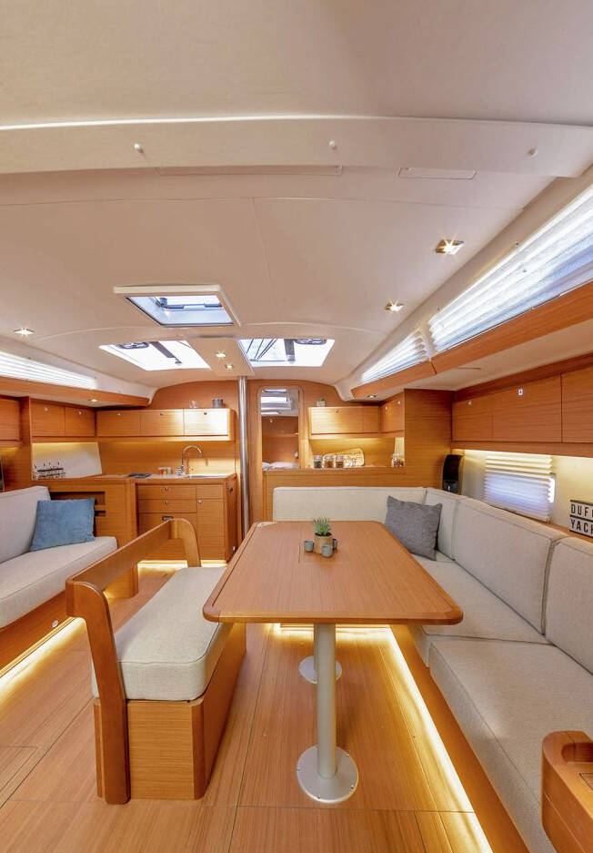 Sailing yacht Dufour 430 GL CIRRUS, built in 2022 is anchored in the Olbia, Sardinia, Italy. It has 4 cabins, can accommodate 8 + 2 people and has 2 toilets. Bed linen and kitchen equipment are included in the price.