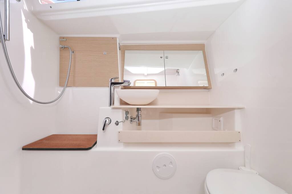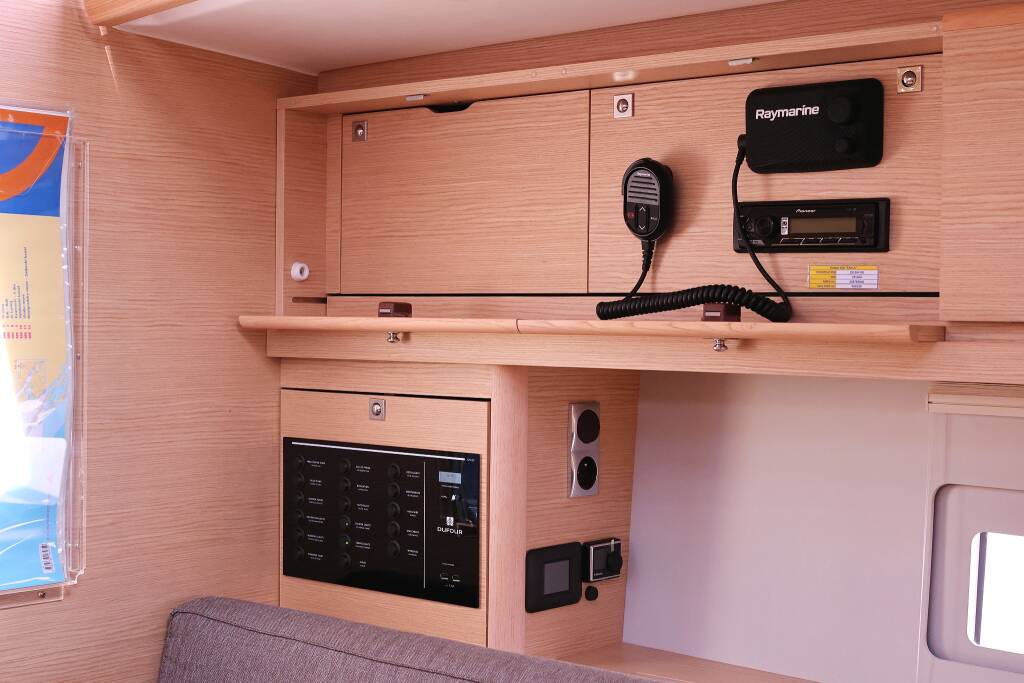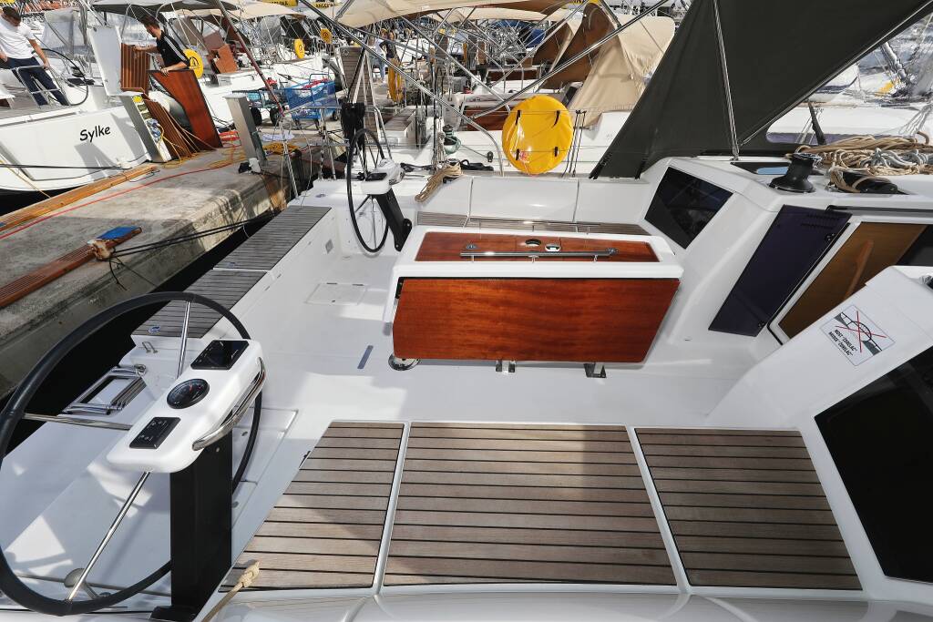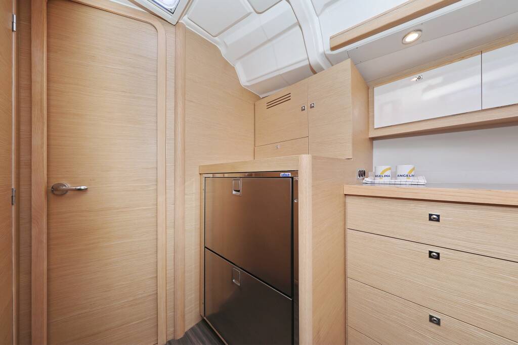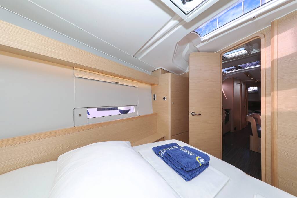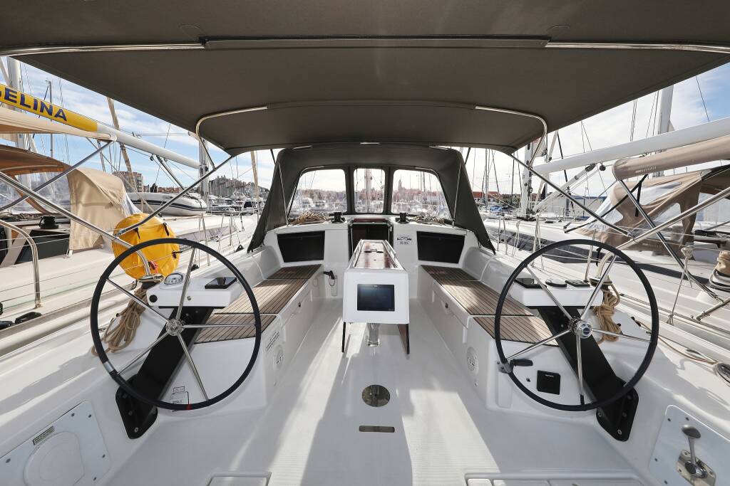 Sailing yacht Dufour 430 Karla, built in 2023 is anchored in the Marina Šangulin, Biograd, Zadar region, Croatia. It has 4 cabins, can accommodate 8 + 2 people and has 2 toilets. Bed linen and kitchen equipment are included in the price.