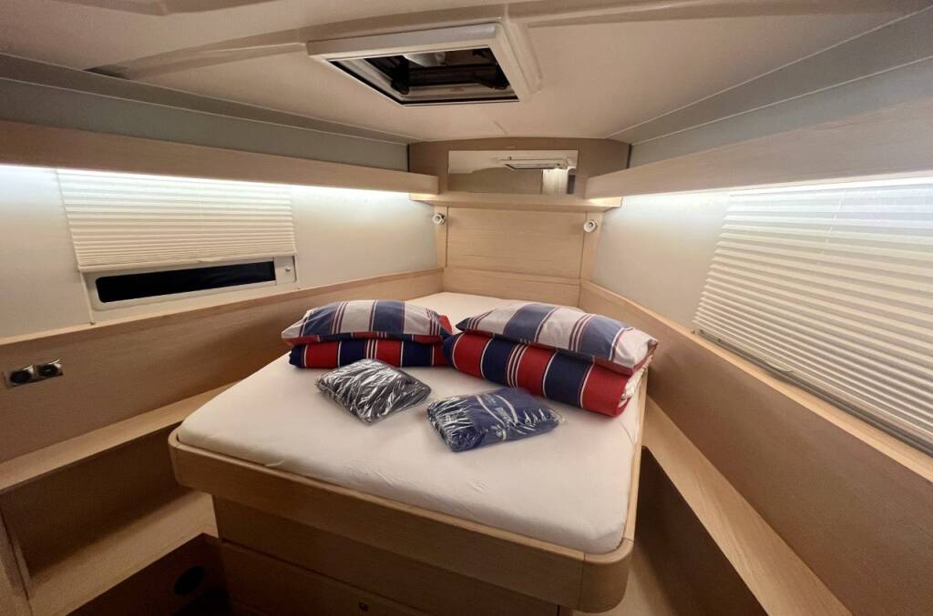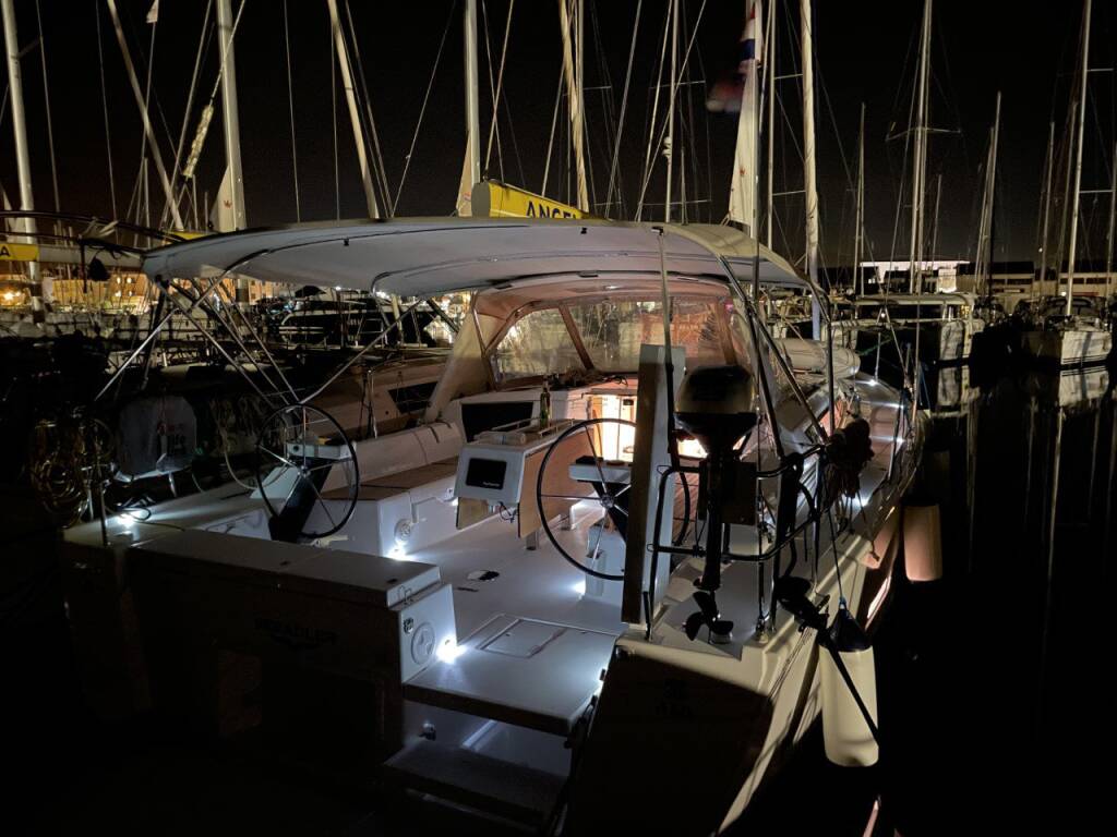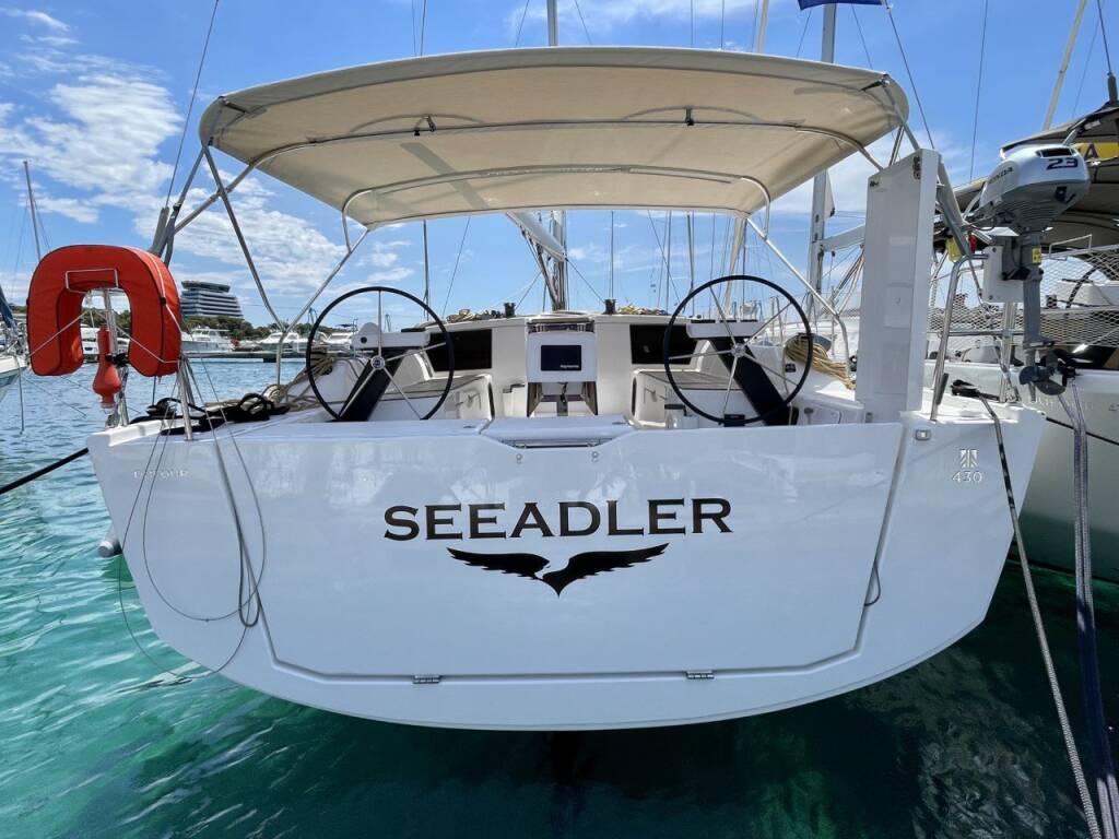 Sailing yacht Dufour 430 Seeadler, built in 2022 is anchored in the ACI Marina Vodice, Šibenik region, Croatia. It has 3 cabins, can accommodate 6 + 2 people and has 2 toilets. Bed linen and kitchen equipment are included in the price.