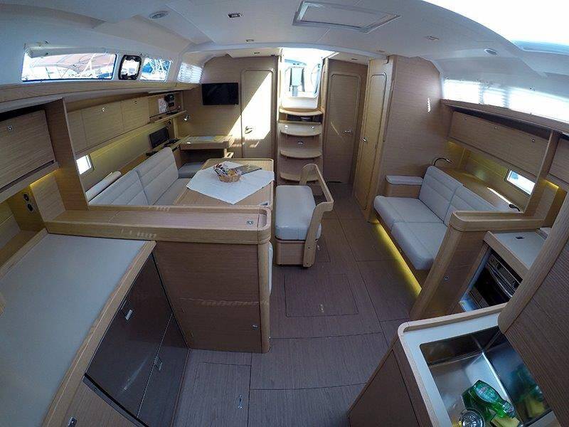 Sailing yacht Dufour 460 GL Avalon II, built in 2017 is anchored in the Marina Mandalina, Sibenik, Šibenik region, Croatia. It has 3 cabins, can accommodate 6 + 2 people and has 2 toilets. Bed linen and kitchen equipment are included in the price.