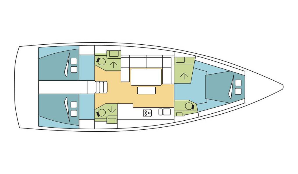 skipper and a hostess/cook are on board, 1 double cabin and 1 forepeak cabin will be