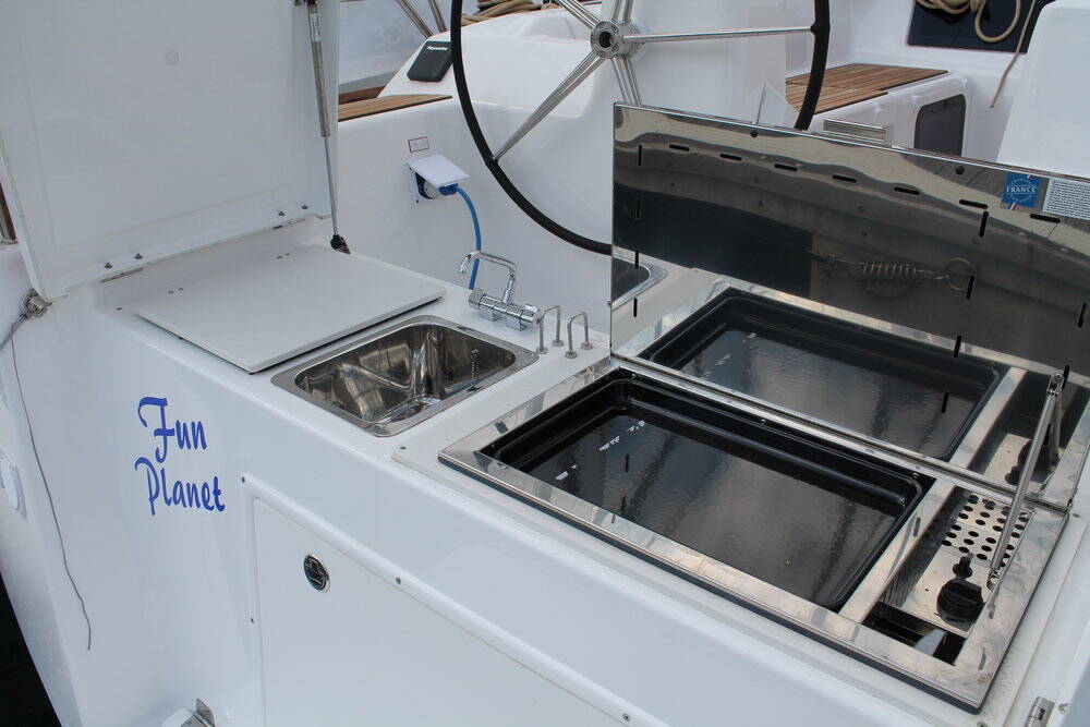 Sailing yacht Dufour 460 GL Fun Planet, built in 2017 is anchored in the Marsala, Sicily, Italy. It has 4 cabins, can accommodate 8 + 2 people and has 4 toilets. Bed linen and kitchen equipment are included in the price.