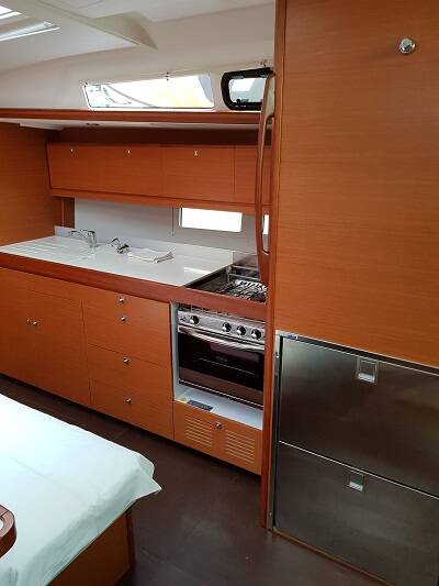 Sailing yacht Dufour 460 GL Ibis, built in 2019 is anchored in the ACI Marina Trogir, Split region, Croatia. It has 5 cabins, can accommodate 10 + 2 people and has 3 toilets. Bed linen and kitchen equipment are included in the price.