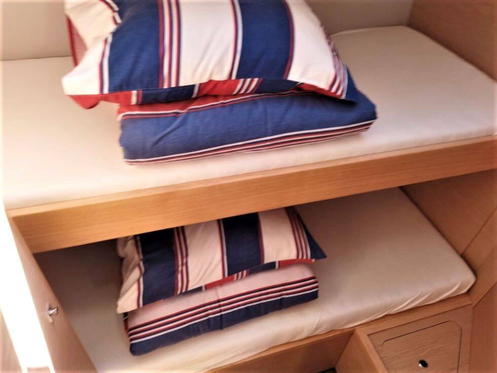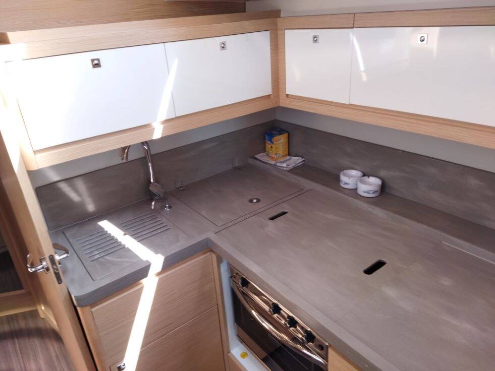 Sailing yacht Dufour 470 Shooting Star, built in 2022 is anchored in the ACI Marina Vodice, Šibenik region, Croatia. It has 5 cabins, can accommodate 10 + 2 people and has 3 toilets. Bed linen and kitchen equipment are included in the price.