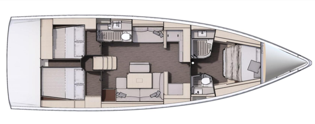 Sailing yacht Dufour 470 Stargate, built in 2022 is anchored in the Sukosan, D-Marin Dalmacija Marina, Zadar region, Croatia. It has 3 cabins, can accommodate 6 + 2 people and has 2 toilets. Bed linen and kitchen equipment are included in the price.