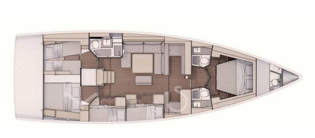 Sailing yacht Dufour 530 Asperula, built in 2022 is anchored in the Marina di Portisco, Sardinia, Italy. It has 5 + 1 cabins, can accommodate 10 + 1 people and has 3 + 1 toilets. Bed linen and kitchen equipment are included in the price.