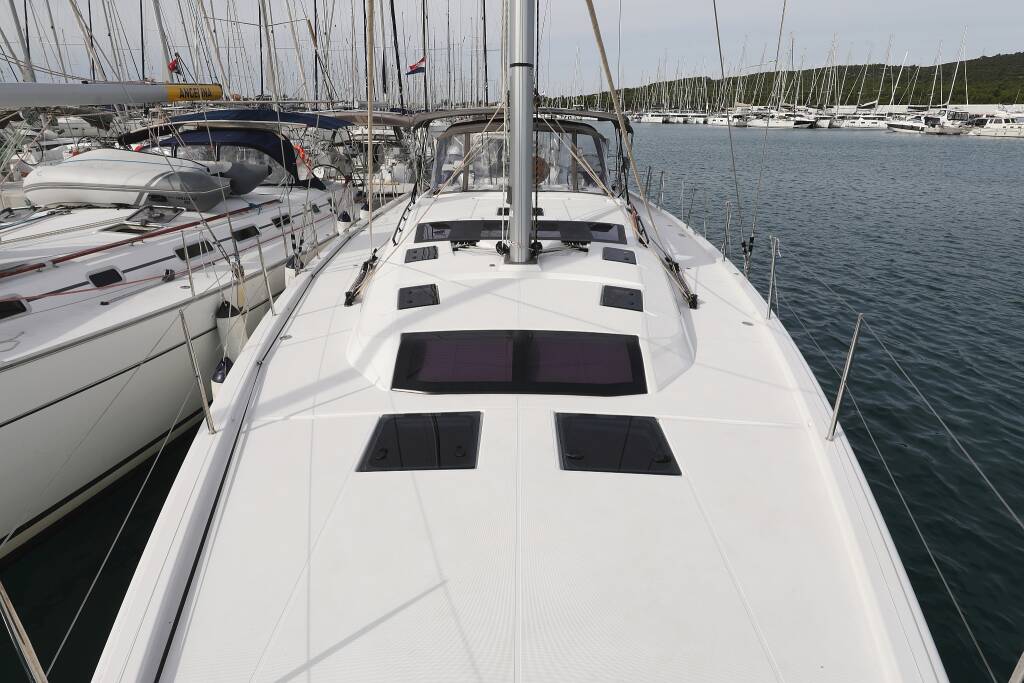 Sailing yacht Dufour 530 Dancer, built in 2022 is anchored in the Sukosan, D-Marin Dalmacija Marina, Zadar region, Croatia. It has 5 cabins, can accommodate 10 + 2 people and has 4 toilets. Bed linen and kitchen equipment are included in the price.