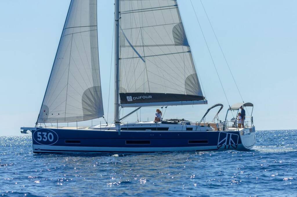 Sailing yacht Dufour 530 Pura Vida, built in 2022 is anchored in the BVI, Tortola, Ritter House Marina, British Virgin Islands, British Virgin Islands. It has 4 cabins, can accommodate 8 people and has 2 toilets. Bed linen and kitchen equipment are included in the price.