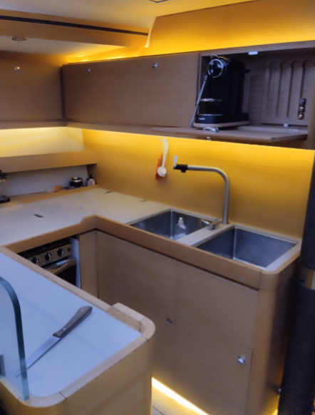 Sailing yacht Dufour 560 GL Altamira, built in 2020 is anchored in the Lefkas, D-Marin, Ionian Islands, Greece. It has 6 cabins, can accommodate 10 people and has 3 + 1 toilets. Bed linen and kitchen equipment are included in the price.