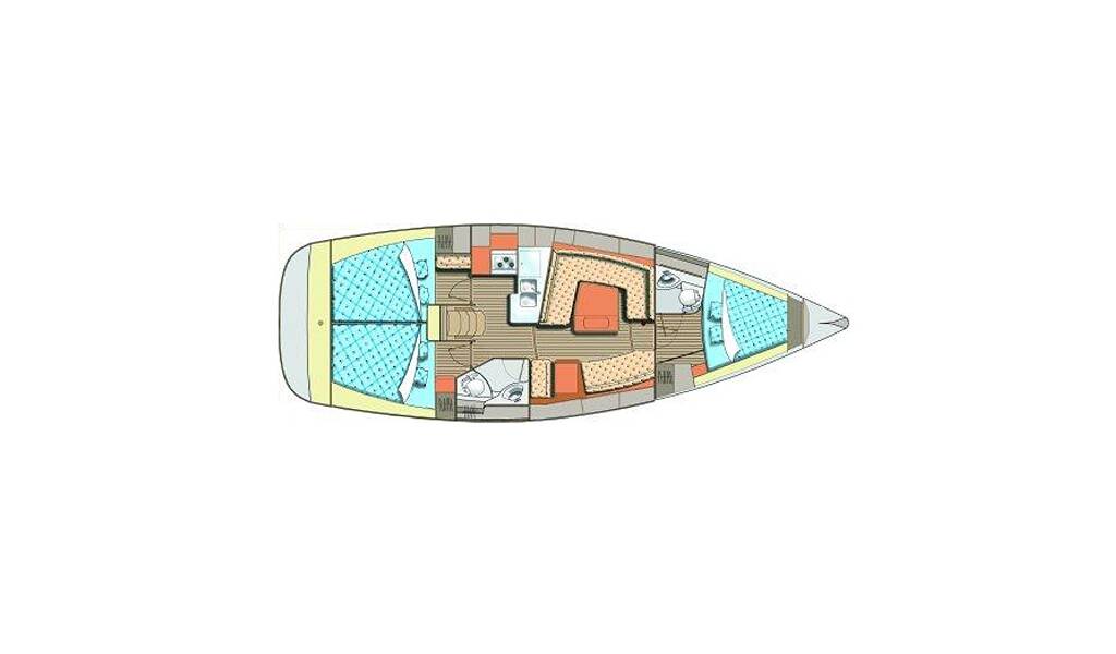 Sailing yacht Elan 384 Impression Artemis, built in 2011 is anchored in the Kos, Kos Marina, Dodecanese, Greece. It has 3 cabins, can accommodate 6 + 2 people and has 2 toilets. Bed linen and kitchen equipment are included in the price.