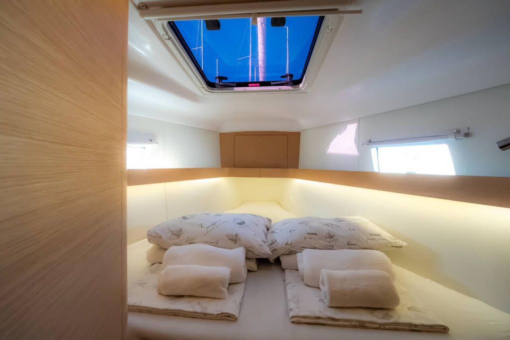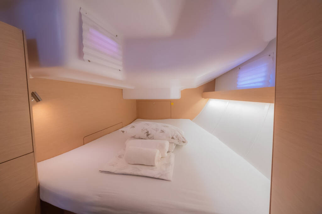 Sailing yacht Elan Impression 45 Adelyna, built in 2018 is anchored in the Marina Kornati, Biograd, Zadar region, Croatia. It has 4 cabins, can accommodate 8 + 2 people and has 2 toilets. Bed linen and kitchen equipment are included in the price.