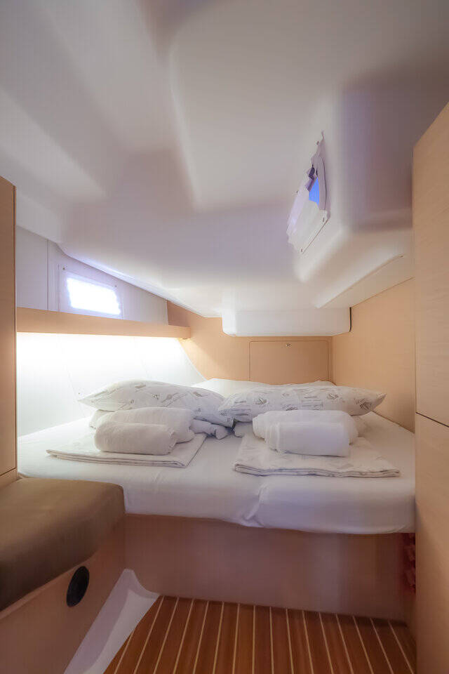 Sailing yacht Elan Impression 45 Amiya, built in 2018 is anchored in the Marina Kornati, Biograd, Zadar region, Croatia. It has 4 cabins, can accommodate 8 + 2 people and has 2 toilets. Bed linen and kitchen equipment are included in the price.