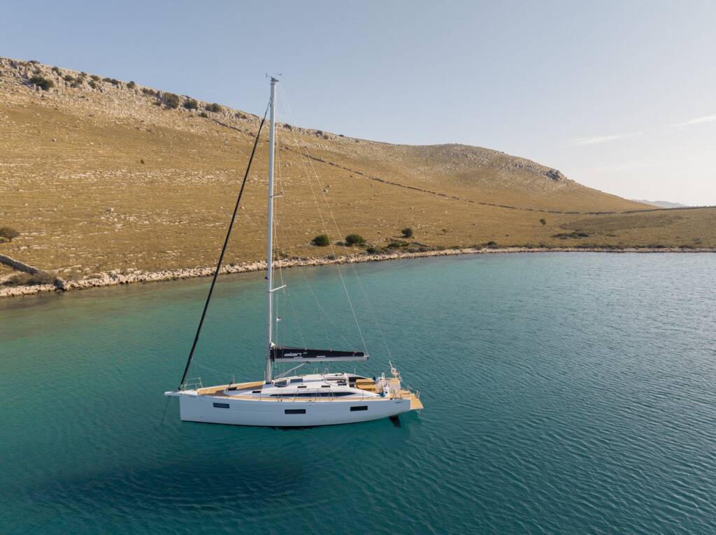 Sailing yacht Elan Impression 45 Elana, built in 2024 is anchored in the ACI Marina Split, Split region, Croatia. It has 4 cabins, can accommodate 8 + 2 people and has 2 toilets. Bed linen and kitchen equipment are included in the price.