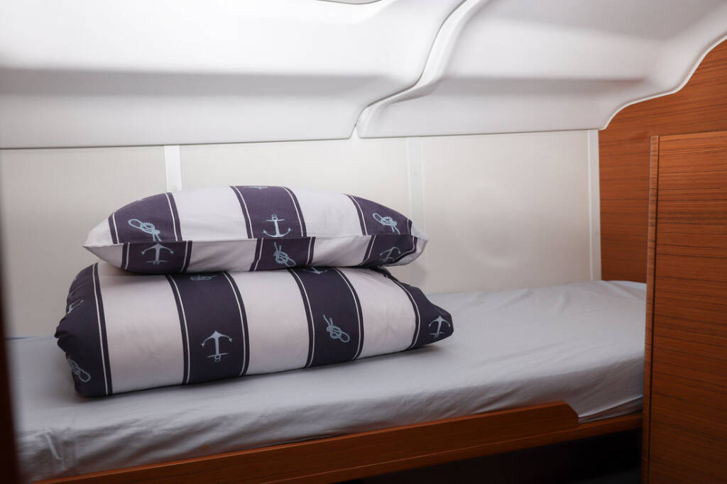 Sailing yacht Elan Impression 45 Indiana, built in 2018 is anchored in the Marina Kornati, Biograd, Zadar region, Croatia. It has 4 cabins, can accommodate 8 + 2 people and has 2 toilets. Bed linen and kitchen equipment are included in the price.