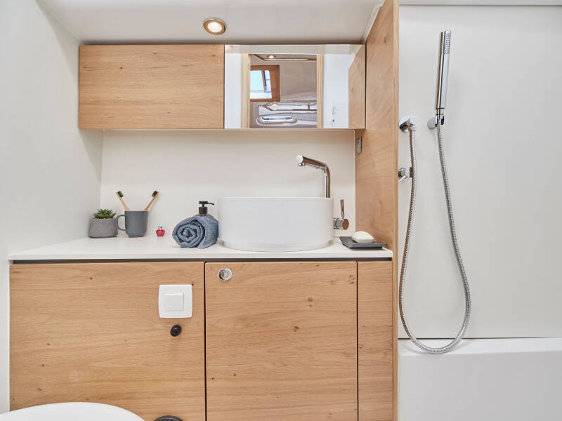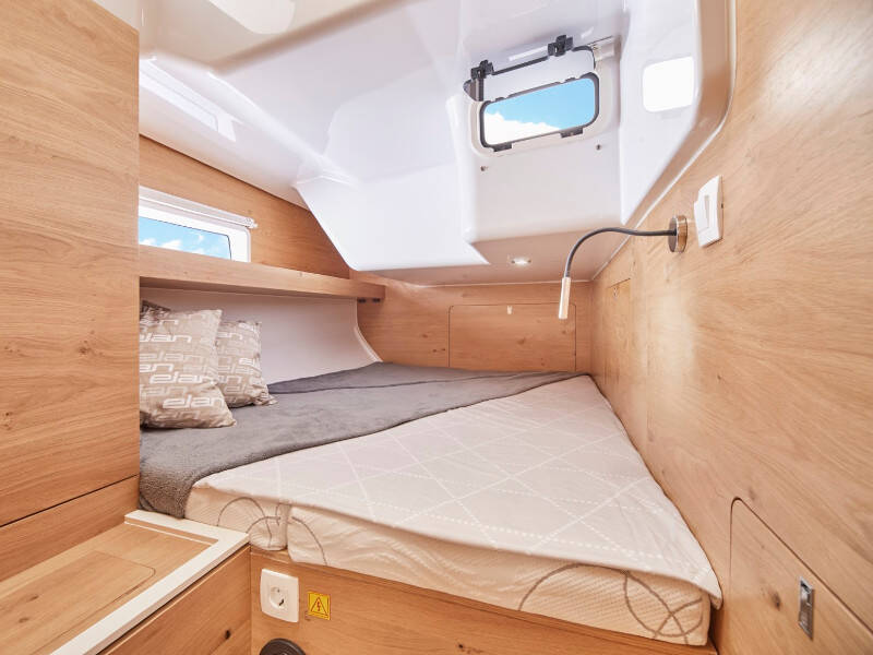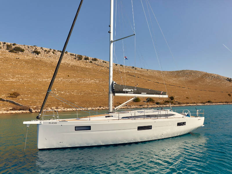 Sailing yacht Elan Impression 45 Ollie, built in 2024 is anchored in the Marina Kremik, Primosten, Šibenik region, Croatia. It has 3 cabins, can accommodate 6 + 2 people and has 2 toilets. Bed linen and kitchen equipment are included in the price.