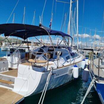 Sailing yacht Elan Impression 45.1 Flamingo, built in 2022 is anchored in the ACI Marina Trogir, Split region, Croatia. It has 4 cabins, can accommodate 8 + 2 people and has 2 toilets. Bed linen and kitchen equipment are included in the price.