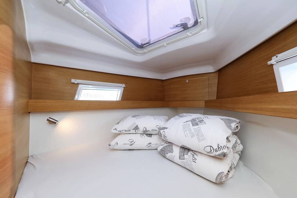 Sailing yacht Elan Impression 45.1 Jackpot, built in 2022 is anchored in the Marina Kornati, Biograd, Zadar region, Croatia. It has 4 cabins, can accommodate 8 + 2 people and has 2 toilets. Bed linen and kitchen equipment are included in the price.