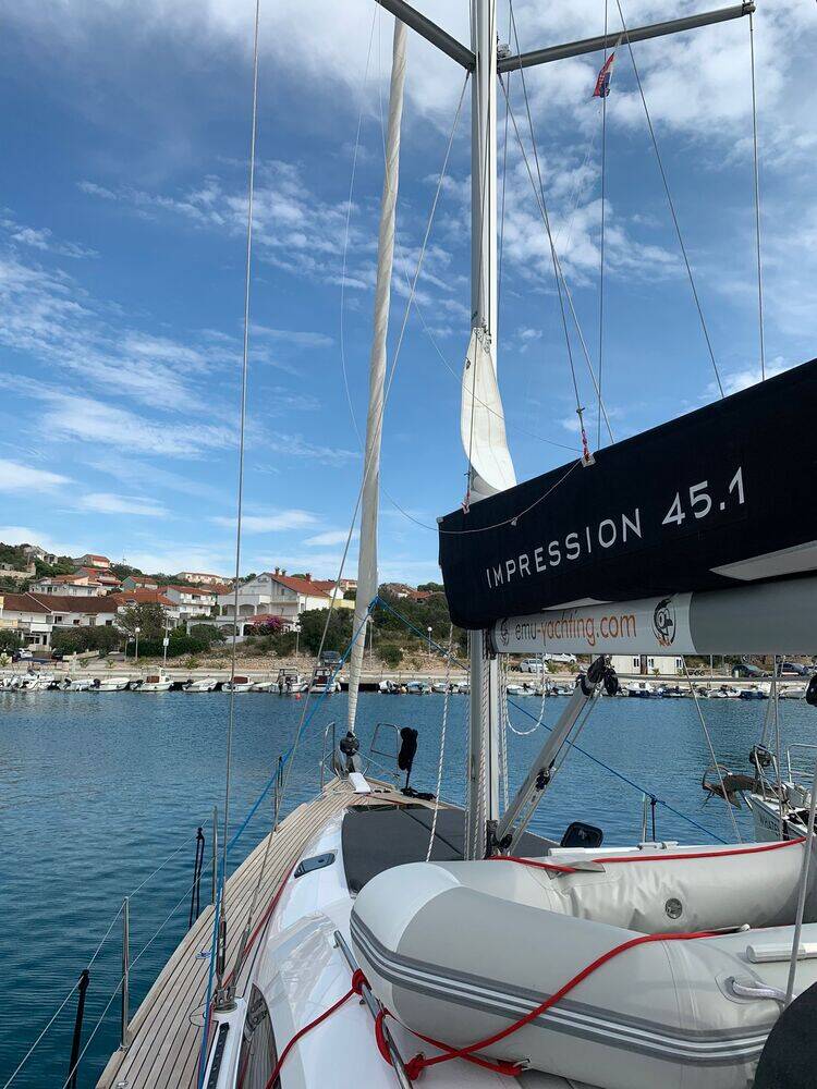 Sailing yacht Elan Impression 45.1 Perun, built in 2023 is anchored in the Marina Drage, Zadar region, Croatia. It has 4 cabins, can accommodate 8 + 2 people and has 2 toilets. Bed linen and kitchen equipment are included in the price.