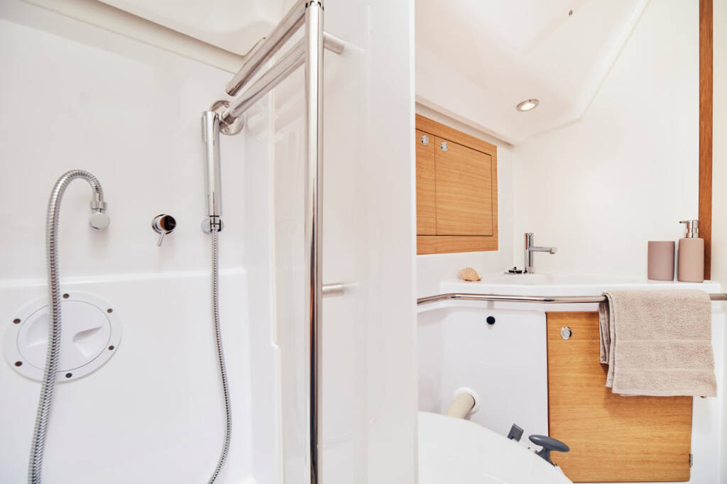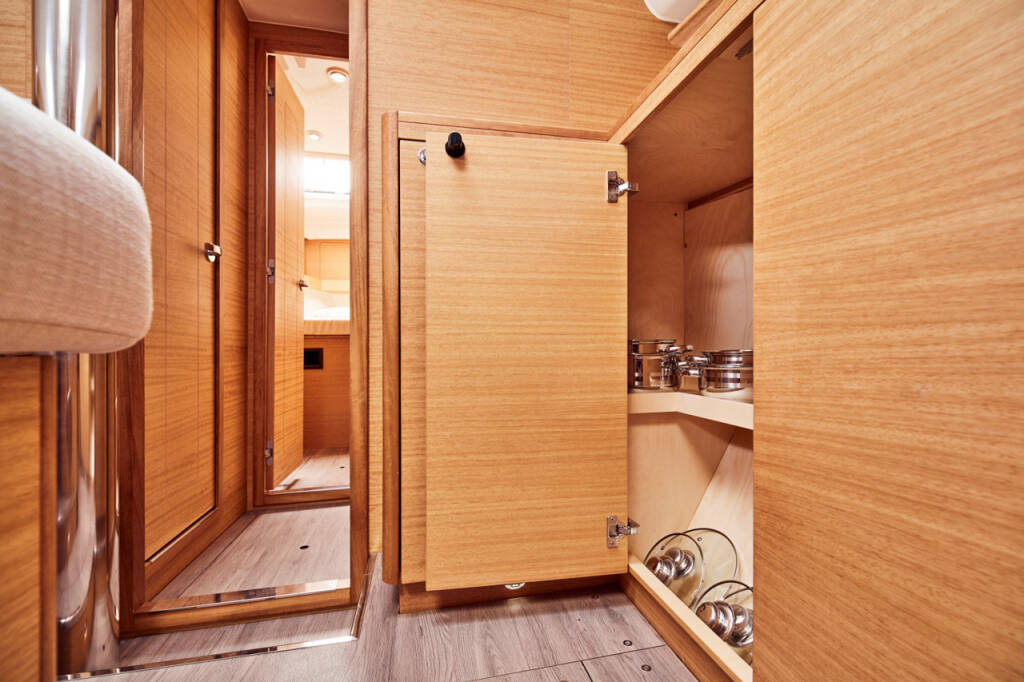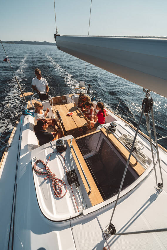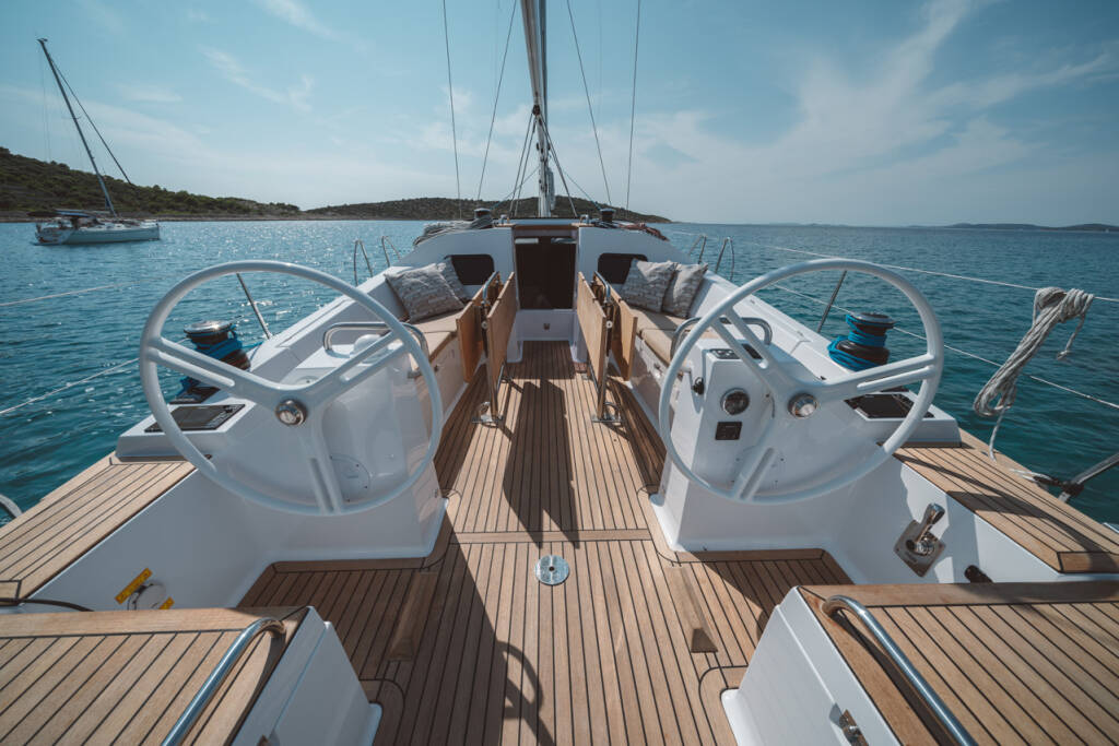 Sailing yacht Elan Impression 45.1 Perun, built in 2023 is anchored in the Marina Hramina, Murter, Šibenik region, Croatia. It has 4 cabins, can accommodate 8 + 2 people and has 2 toilets. Bed linen and kitchen equipment are included in the price.