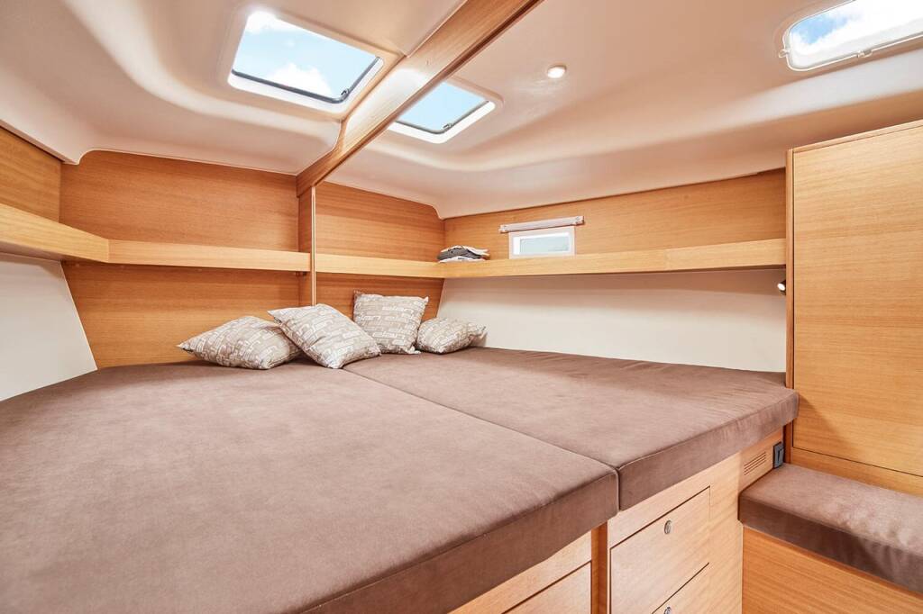 Sailing yacht Elan Impression 50.1 Do-Re-Mi, built in 2023 is anchored in the Trogir, Yachtclub Seget (Marina Baotić), Split region, Croatia. It has 5 + 1 cabins, can accommodate 10 + 1 + 1 people and has 2 toilets. Bed linen and kitchen equipment are included in the price.
