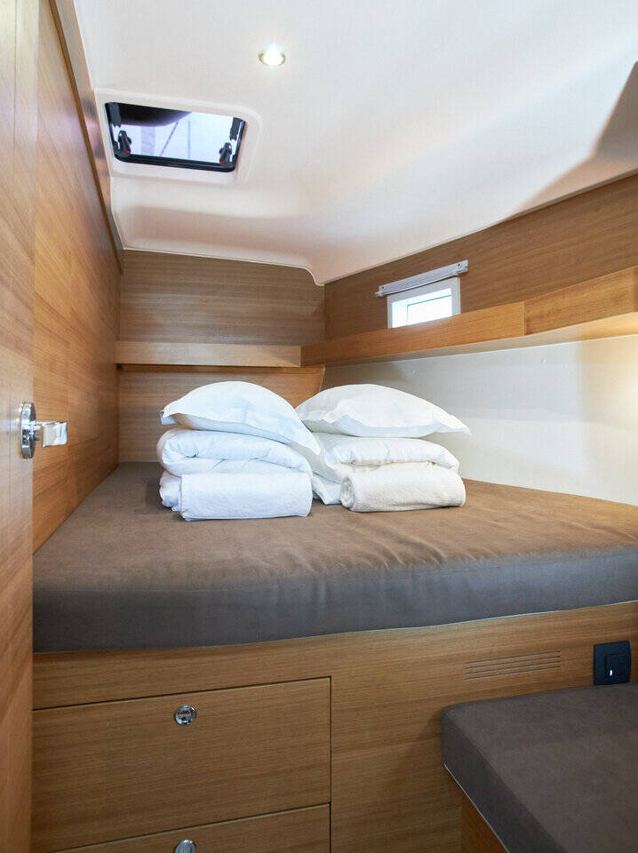 Sailing yacht Elan Impression 50.1 Lija, built in 2021 is anchored in the Marina Kastela, Split region, Croatia. It has 5 cabins, can accommodate 10 + 2 people and has 2 toilets. Bed linen and kitchen equipment are included in the price.