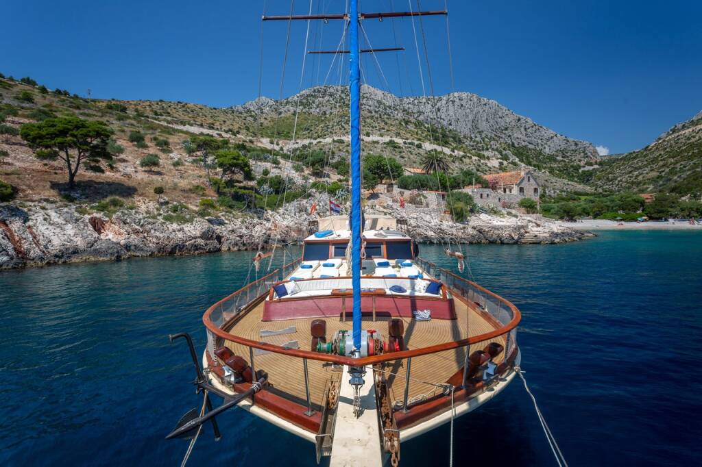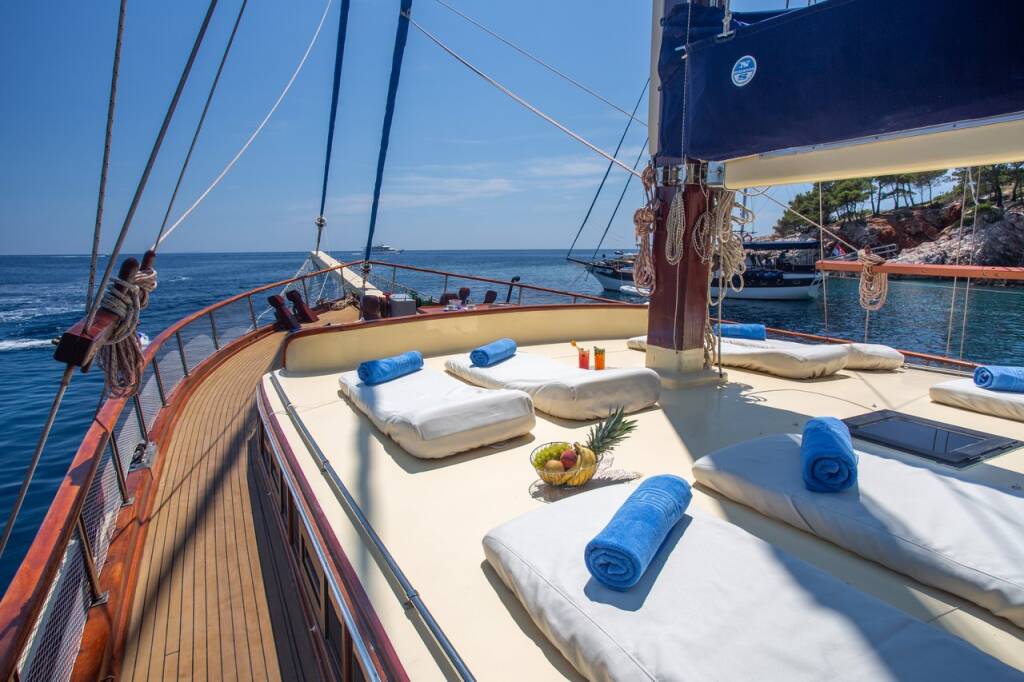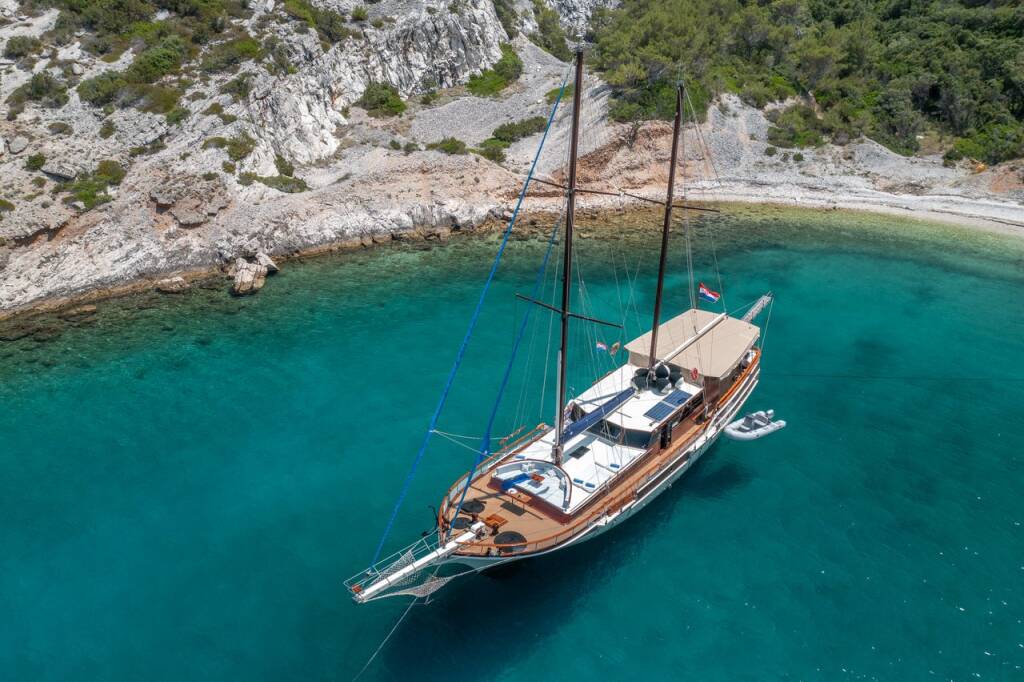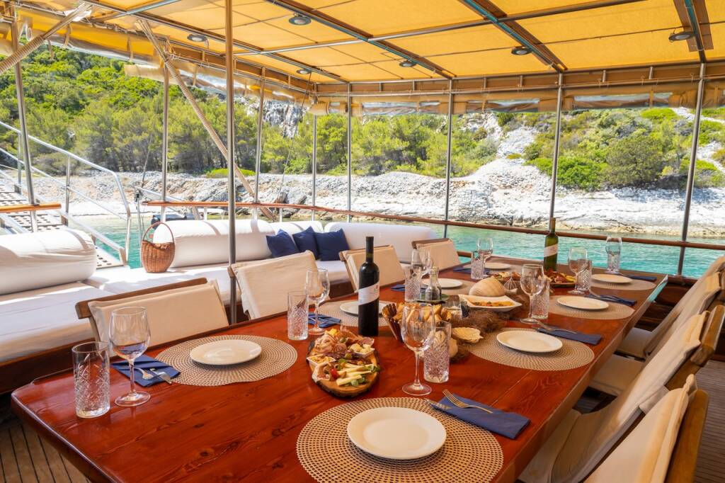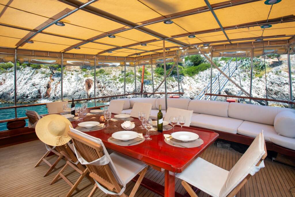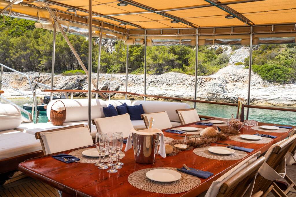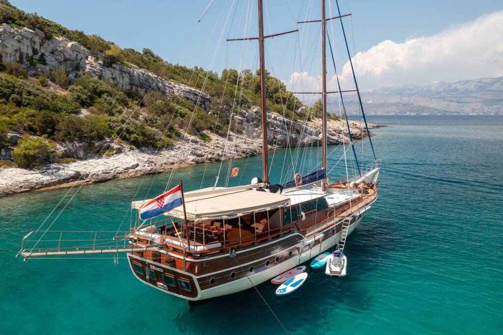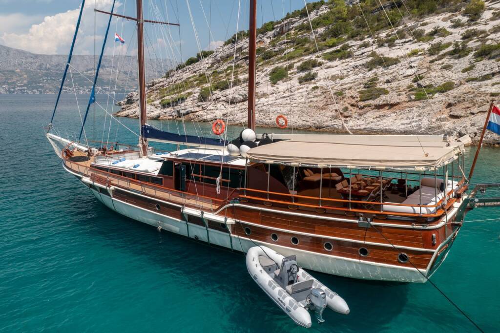 Gulet Eleganza Eleganza, built in 1997 is anchored in the Split Harbour, Split region, Croatia. It has 5 cabins, can accommodate 10 people and has 5 toilets. Bed linen and kitchen equipment are included in the price.
