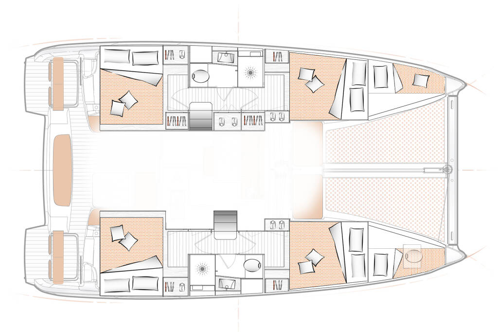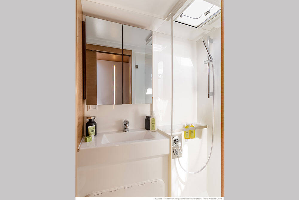 Catamaran Excess 11 Kale I, built in 2023 is anchored in the Fethiye, Lykia Yacht Club, Aegean, Turkey. It has 4 + 2 cabins, can accommodate 8 + 2 people and has 2 + 1 toilets. Bed linen and kitchen equipment are included in the price.