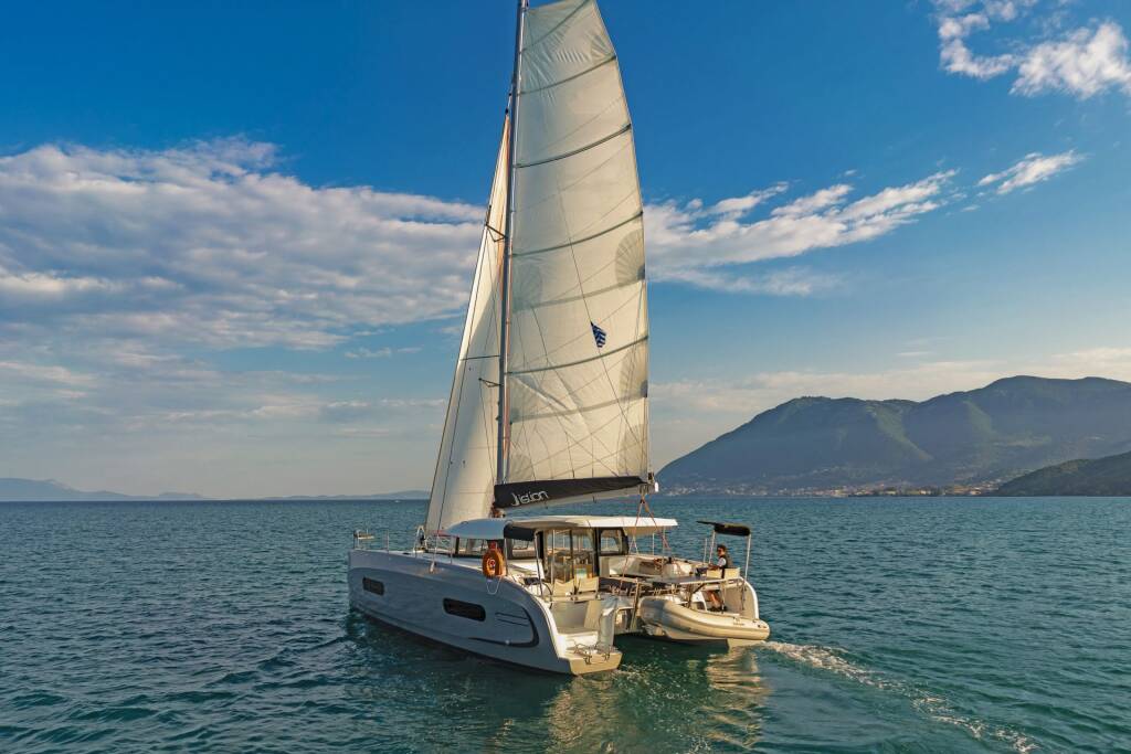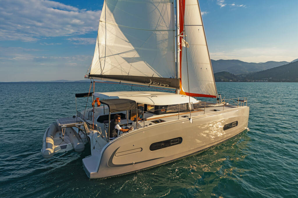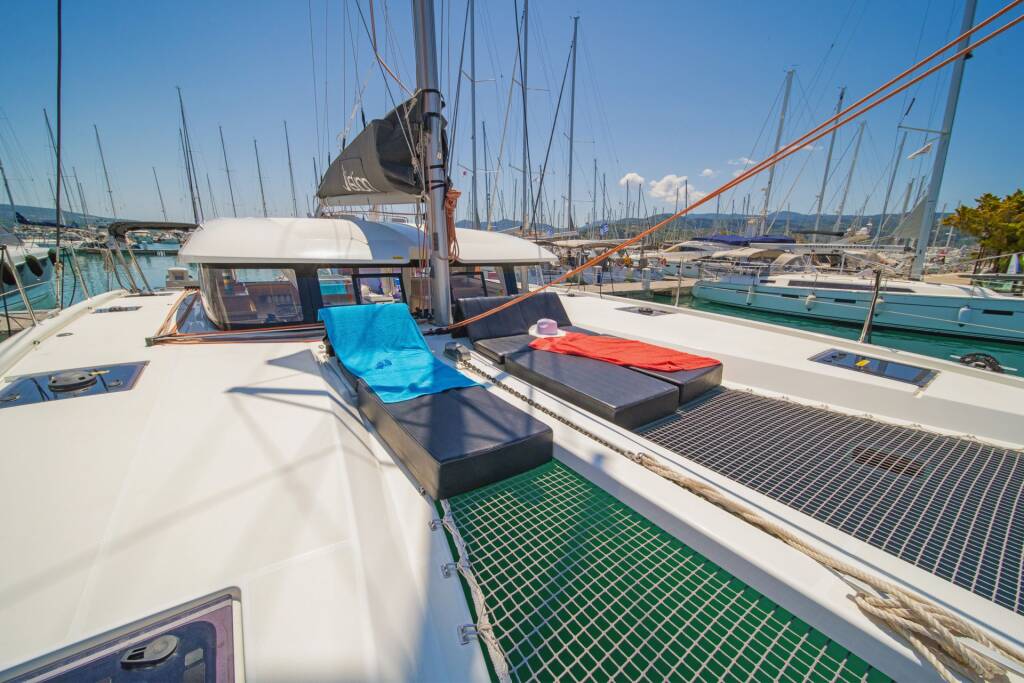 Catamaran Excess 11 Phos, built in 2021 is anchored in the Lefkas, D-Marin, Ionian Islands, Greece. It has 4 + 2 cabins, can accommodate 8 + 2 people and has 2 toilets. Bed linen and kitchen equipment are included in the price.