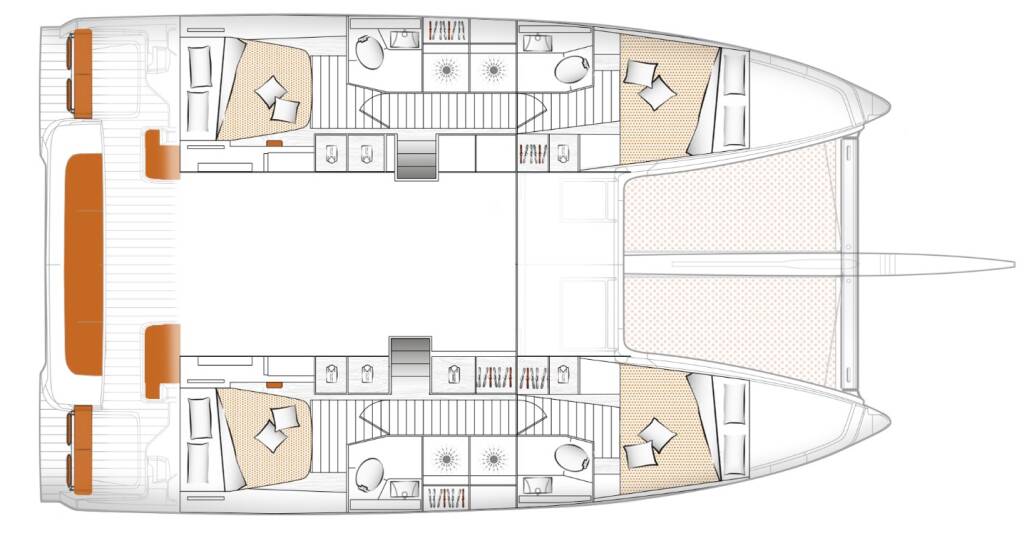 Catamaran Excess 14 Princess Rita, built in 2024 is anchored in the Trogir, Yachtclub Seget (Marina Baotić), Split region, Croatia. It has 4 + 2 cabins, can accommodate 8 + 2 + 2 people and has 4 toilets. Bed linen and kitchen equipment are included in the price.