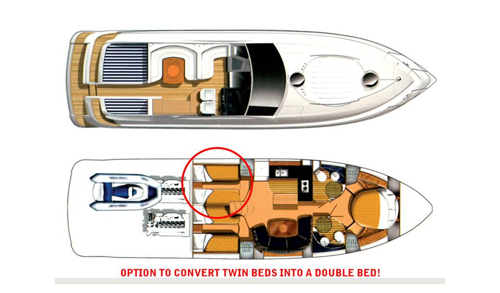 Motor yacht Fairline Targa 52 GT Katrin, built in 2008 is anchored in the Marina Mandalina, Sibenik, Šibenik region, Croatia. It has 3 cabins, can accommodate 6 + 2 people and has 2 toilets. Bed linen and kitchen equipment are included in the price.