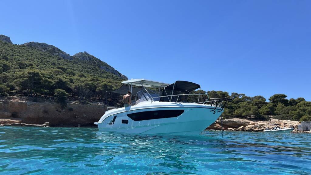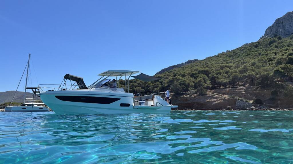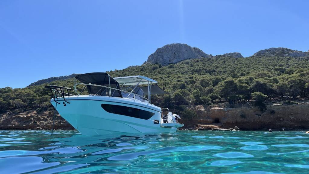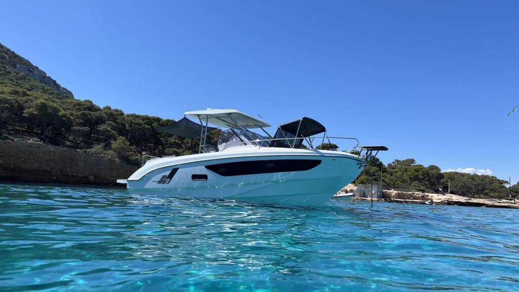 Motor boat Flyer 9 SUNdeck Joy 1, built in 2024 is anchored in the Palaia Fokaia Port, Athens area/Saronic/Peloponese, Greece. It has 1 cabins, can accommodate 0 people and has 1 toilets. Bed linen and kitchen equipment are included in the price.