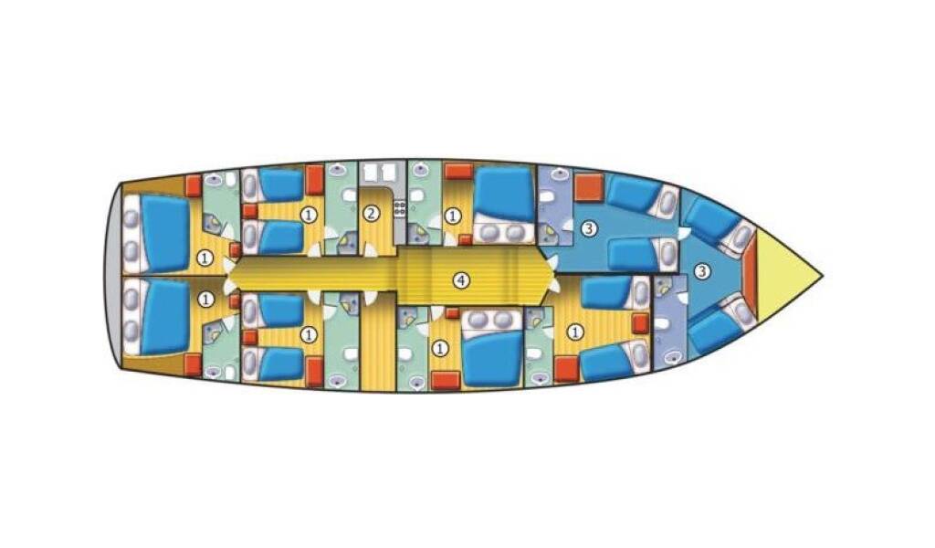 Gulet Fortuna Fortuna, built in 1994 is anchored in the Marina Kastela, Split region, Croatia. It has 6 cabins, can accommodate 12 people and has 6 toilets. Bed linen and kitchen equipment are included in the price.