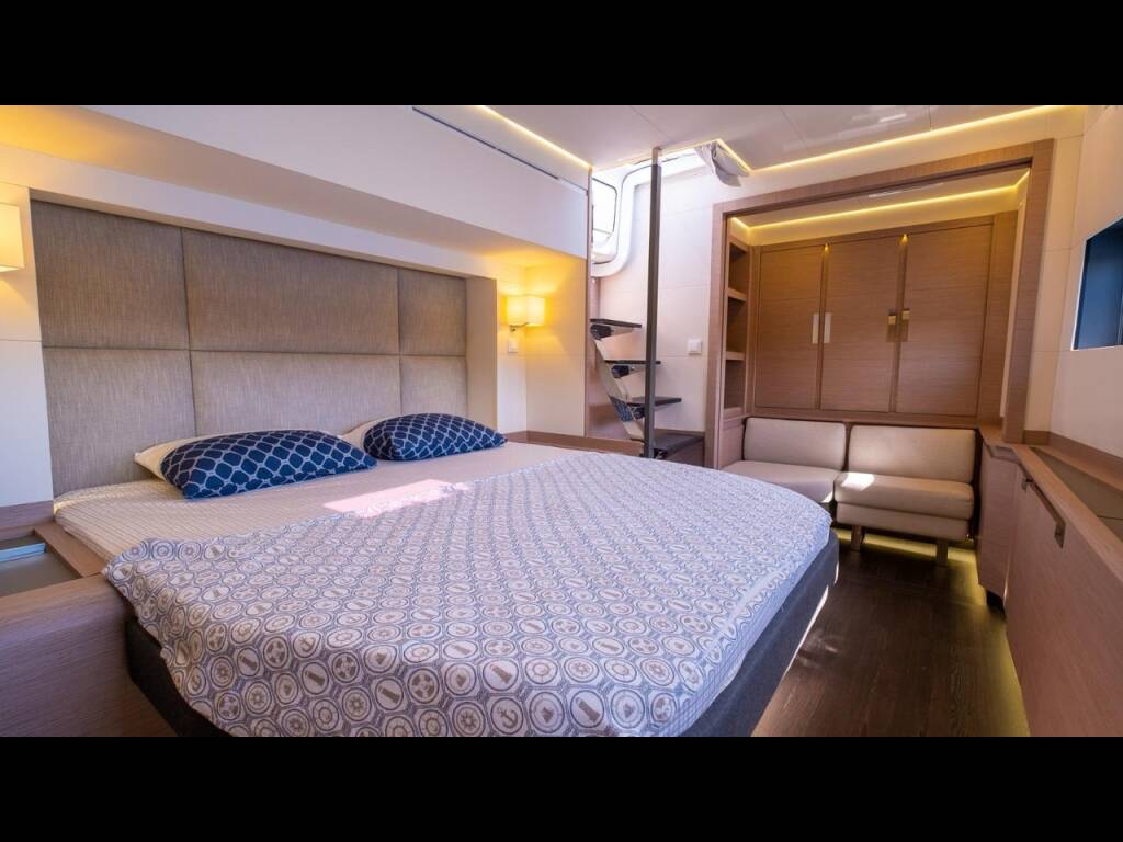 Catamaran Fountaine Pajot Alegria 67 Mus 3, built in 2023 is anchored in the Bodrum Yat Limani Marina, Aegean, Turkey. It has 5 + 2 cabins, can accommodate 10 + 2 people and has 6 toilets. Bed linen and kitchen equipment are included in the price.
