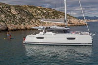 Catamaran Fountaine Pajot Astrea 42 Agitation, built in 2024 is anchored in the Sardinia, Cannigione, Sardinia, Italy. It has 4 + 1 cabins, can accommodate 8 + 2 + 1 people and has 4 + 1 toilets. Bed linen and kitchen equipment are included in the price.