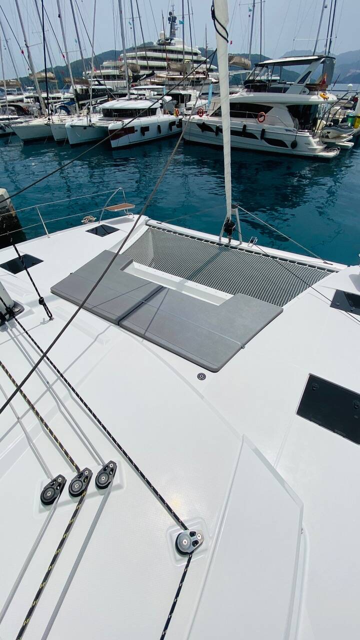 Catamaran Fountaine Pajot Astrea 42 Capella 1, built in 2024 is anchored in the Fethiye, Yacht Classic Hotel Marina, Aegean, Turkey. It has 4 + 1 cabins, can accommodate 8 + 1 people and has 4 toilets. Bed linen and kitchen equipment are included in the price.