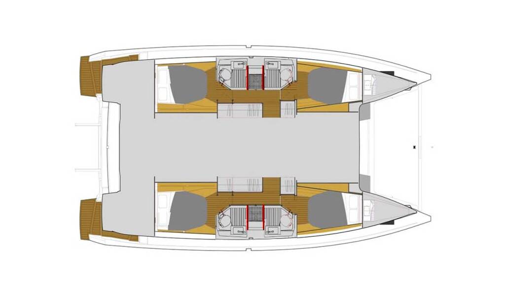Catamaran Fountaine Pajot Astrea 42 Flonja, built in 2024 is anchored in the Marina Kornati, Biograd, Zadar region, Croatia. It has 4 + 2 cabins, can accommodate 8 + 1 + 2 people and has 4 toilets. Bed linen and kitchen equipment are included in the price.