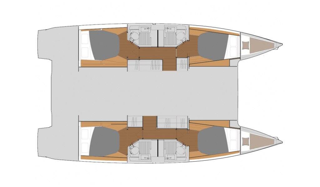 Catamaran Fountaine Pajot Astrea 42 Imagine, built in 2022 is anchored in the Marina Mandalina, Sibenik, Šibenik region, Croatia. It has 4 + 2 cabins, can accommodate 8 + 2 + 2 people and has 4 toilets. Bed linen and kitchen equipment are included in the price.